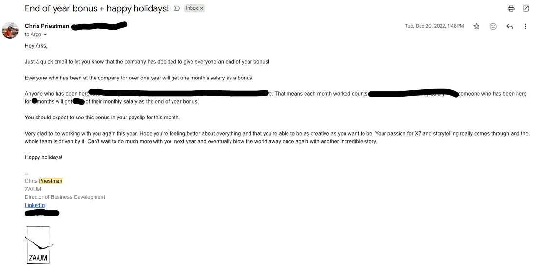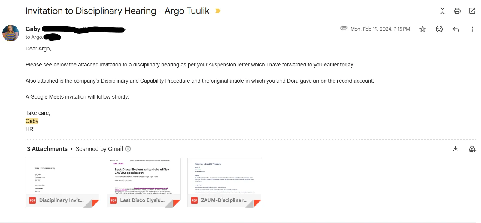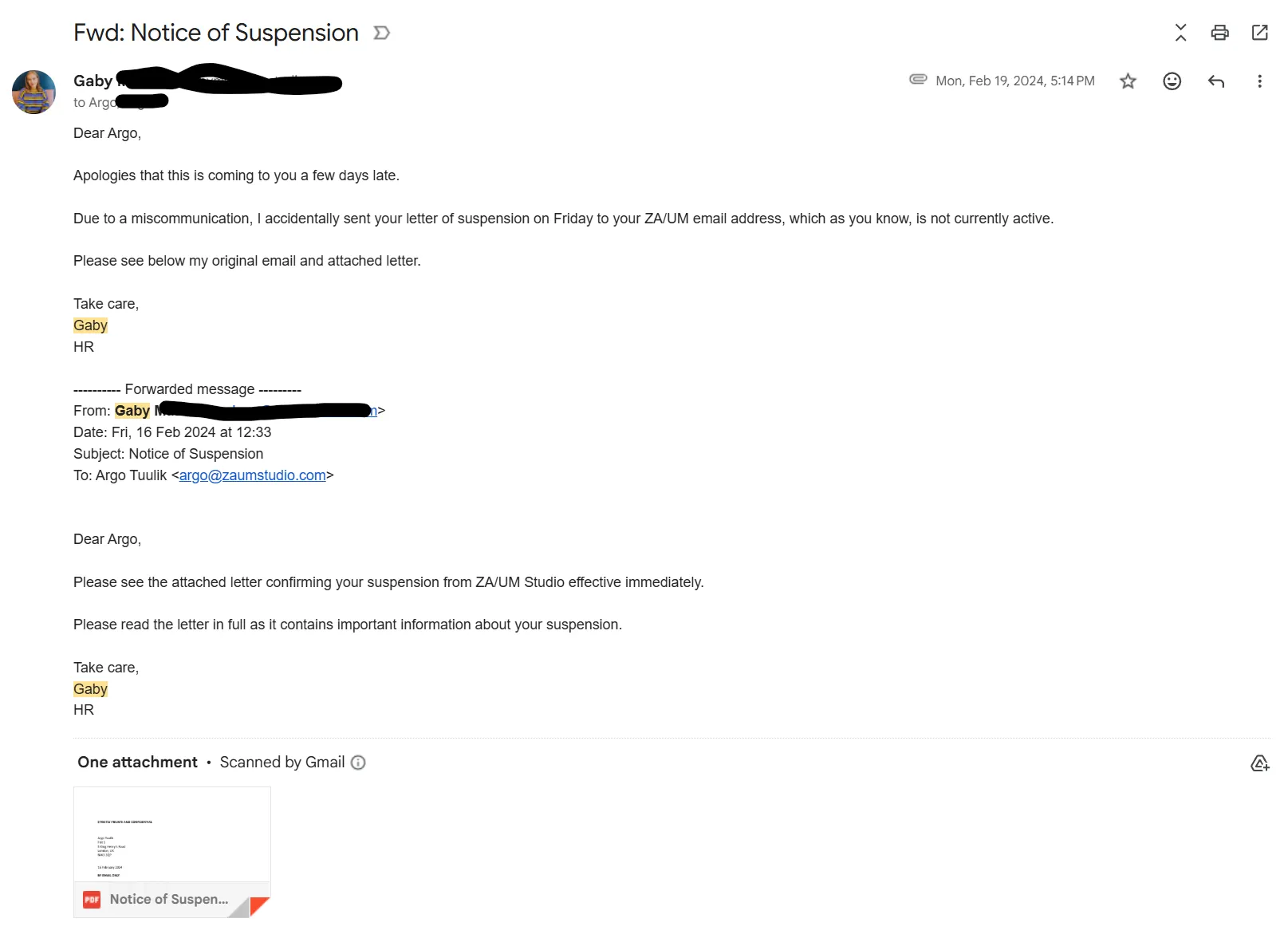 after the article airs. A few days later I get this email from HR.