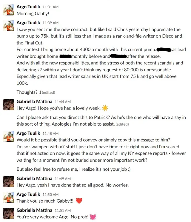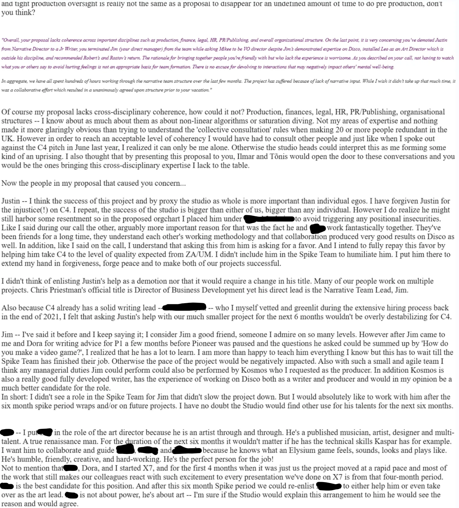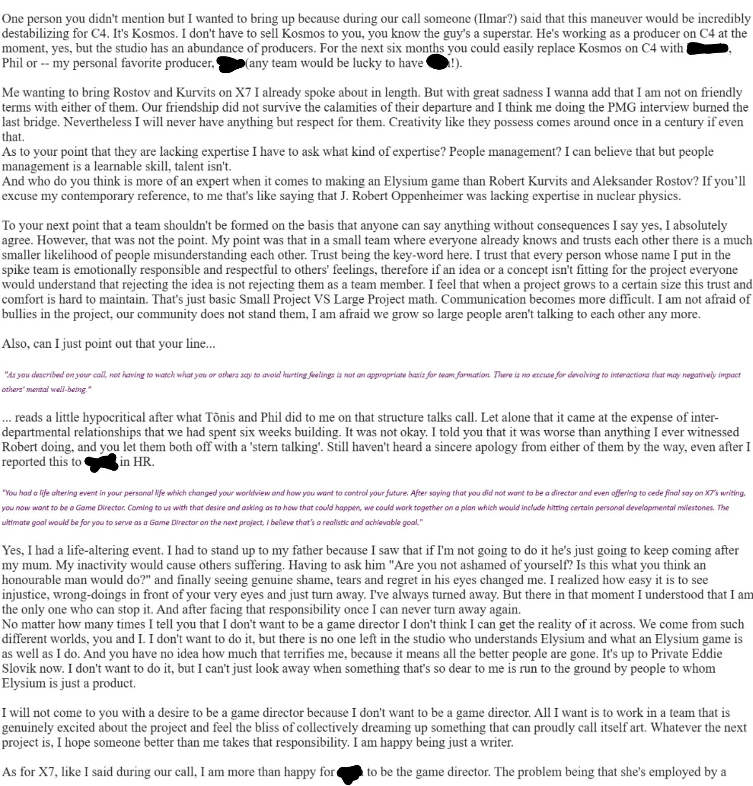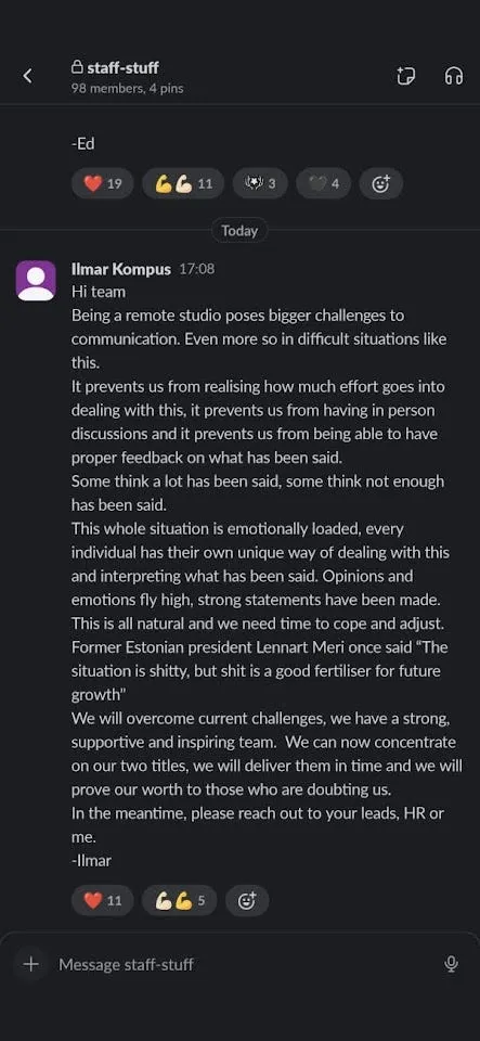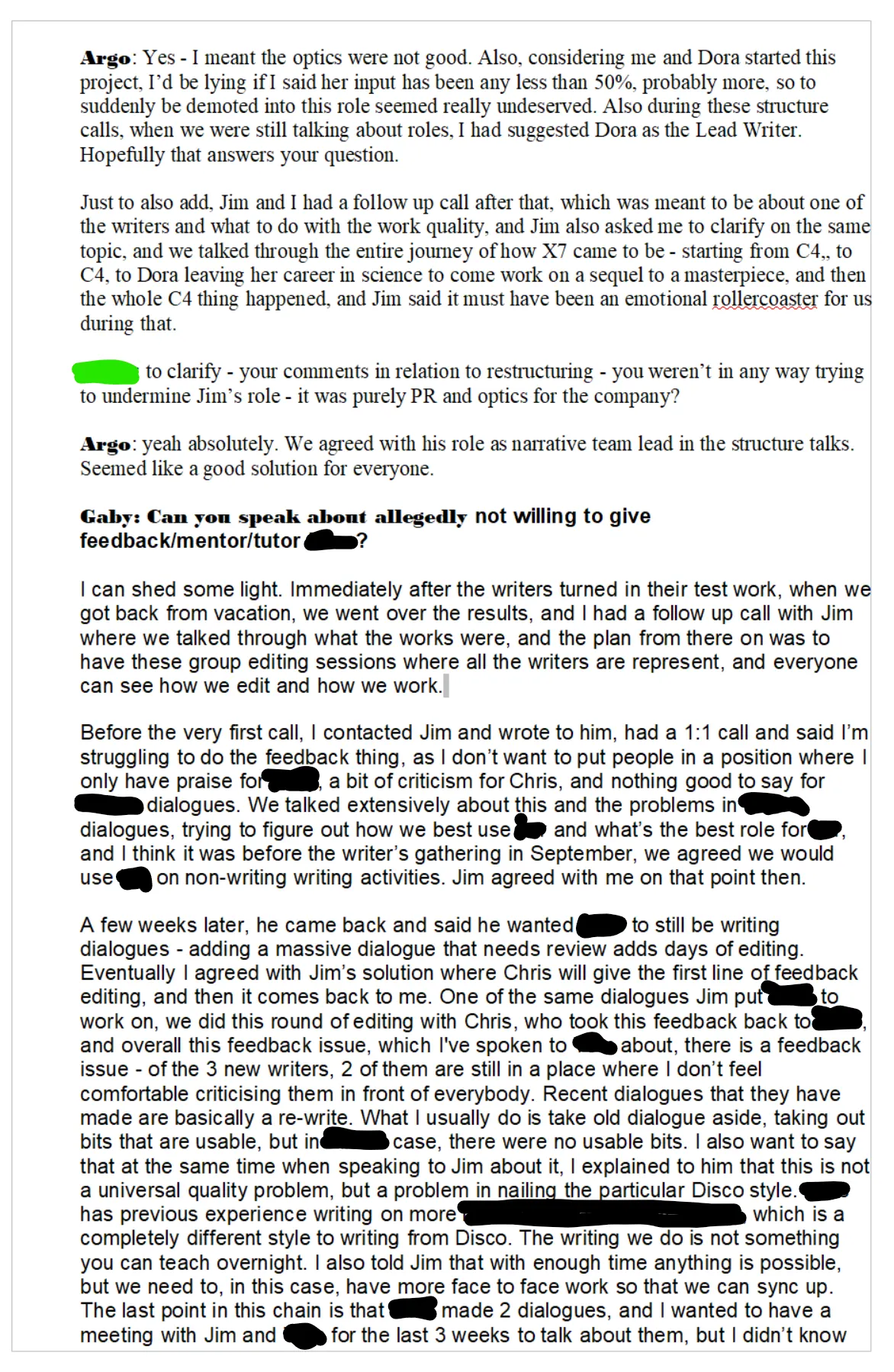 was the feedback of every other employee of the studio since the