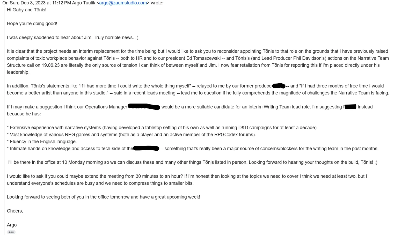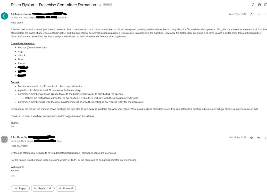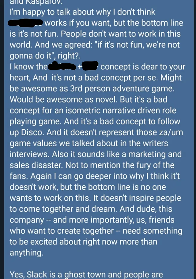 of the Y12 (Disco Elysium sequel) writing team still working on the