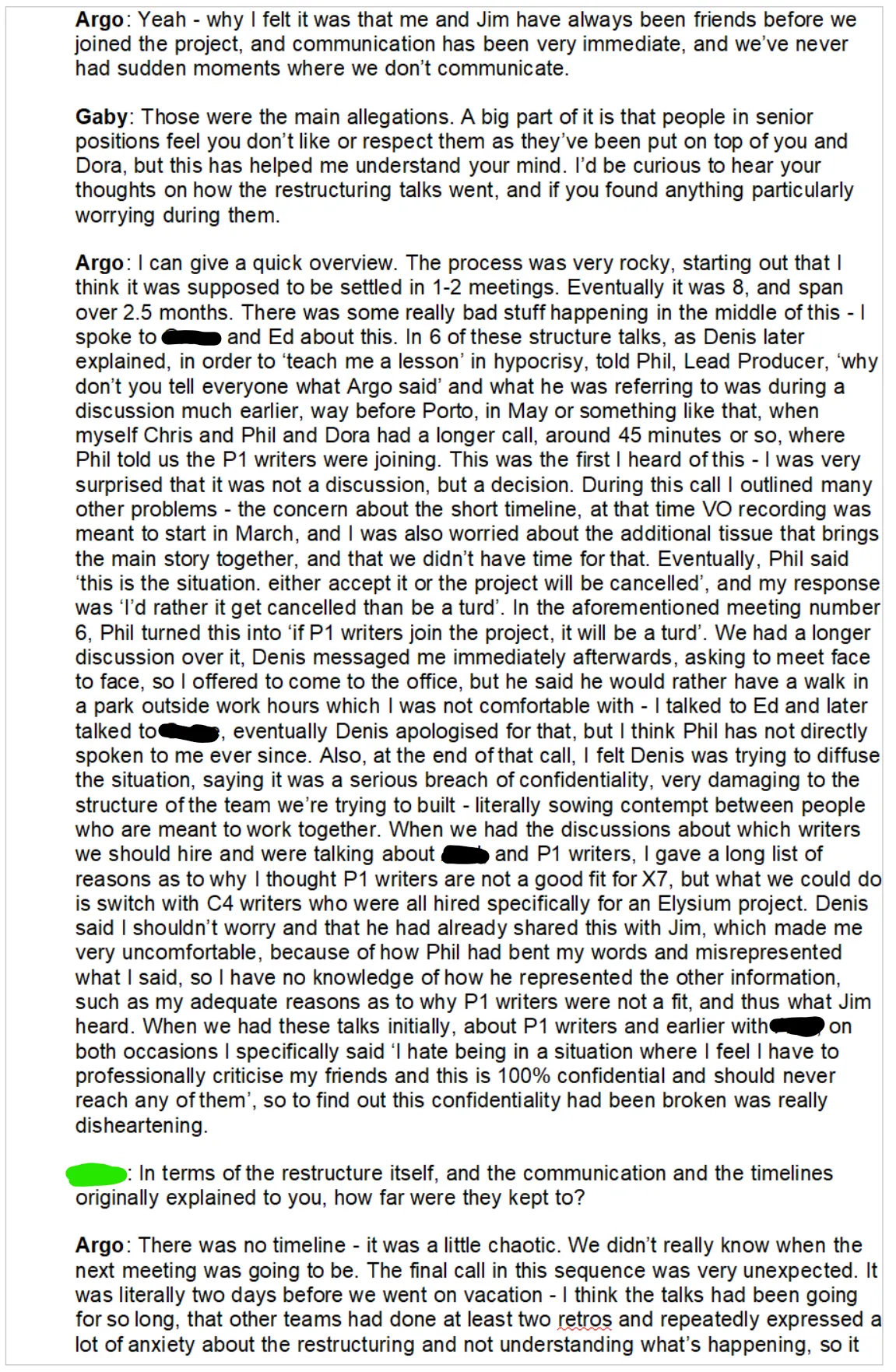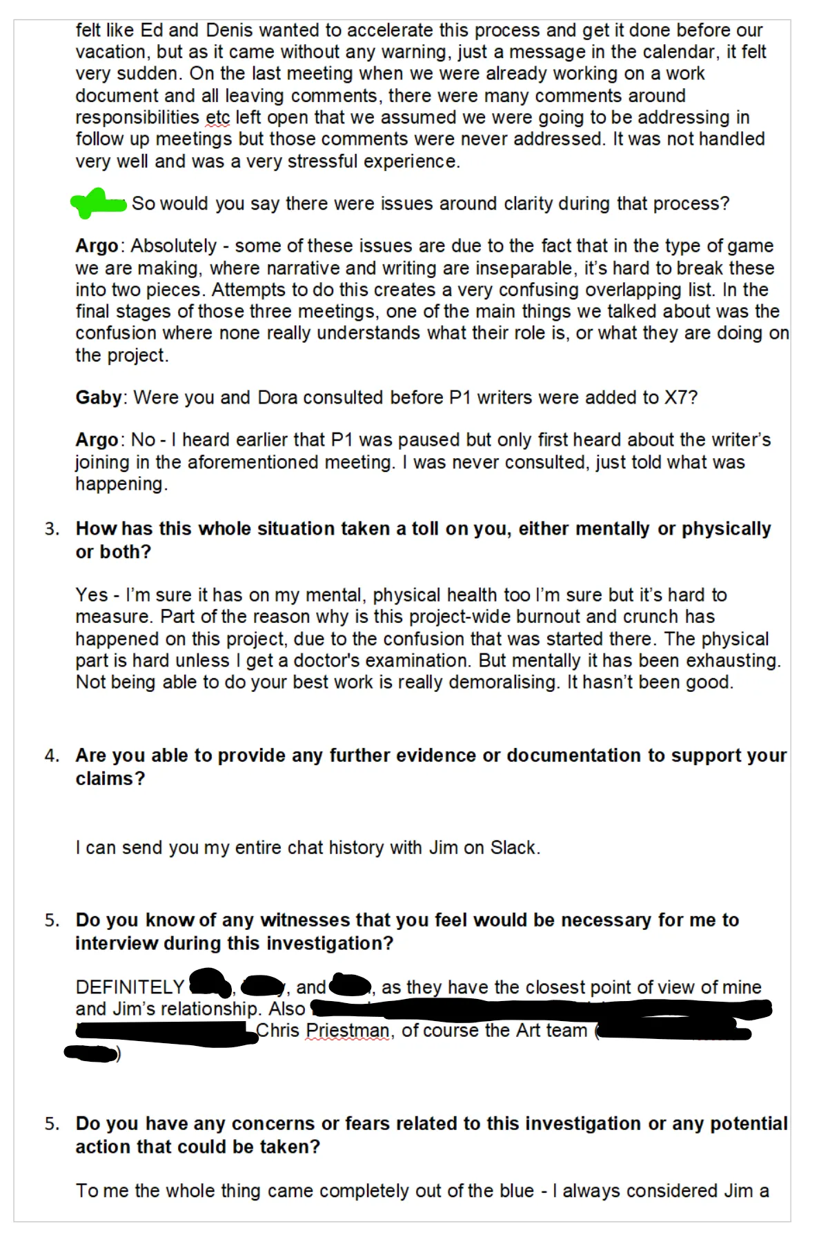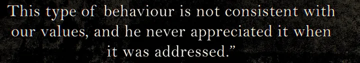 working relationship was toxic, why he didn’t feel comfortable talking