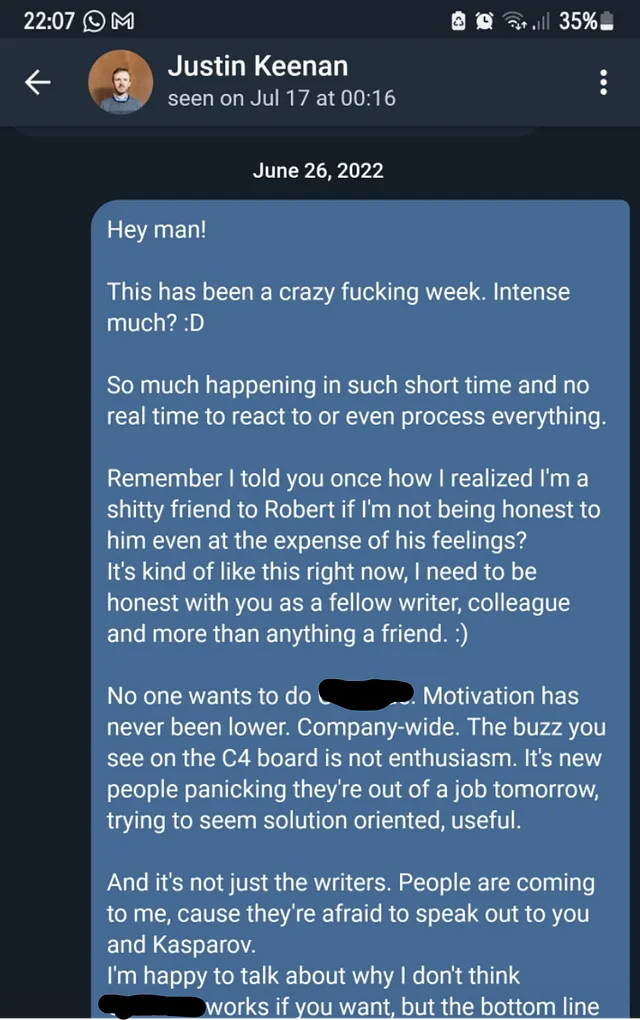 A week after C4 announcement I write this to Justin in Telegram…