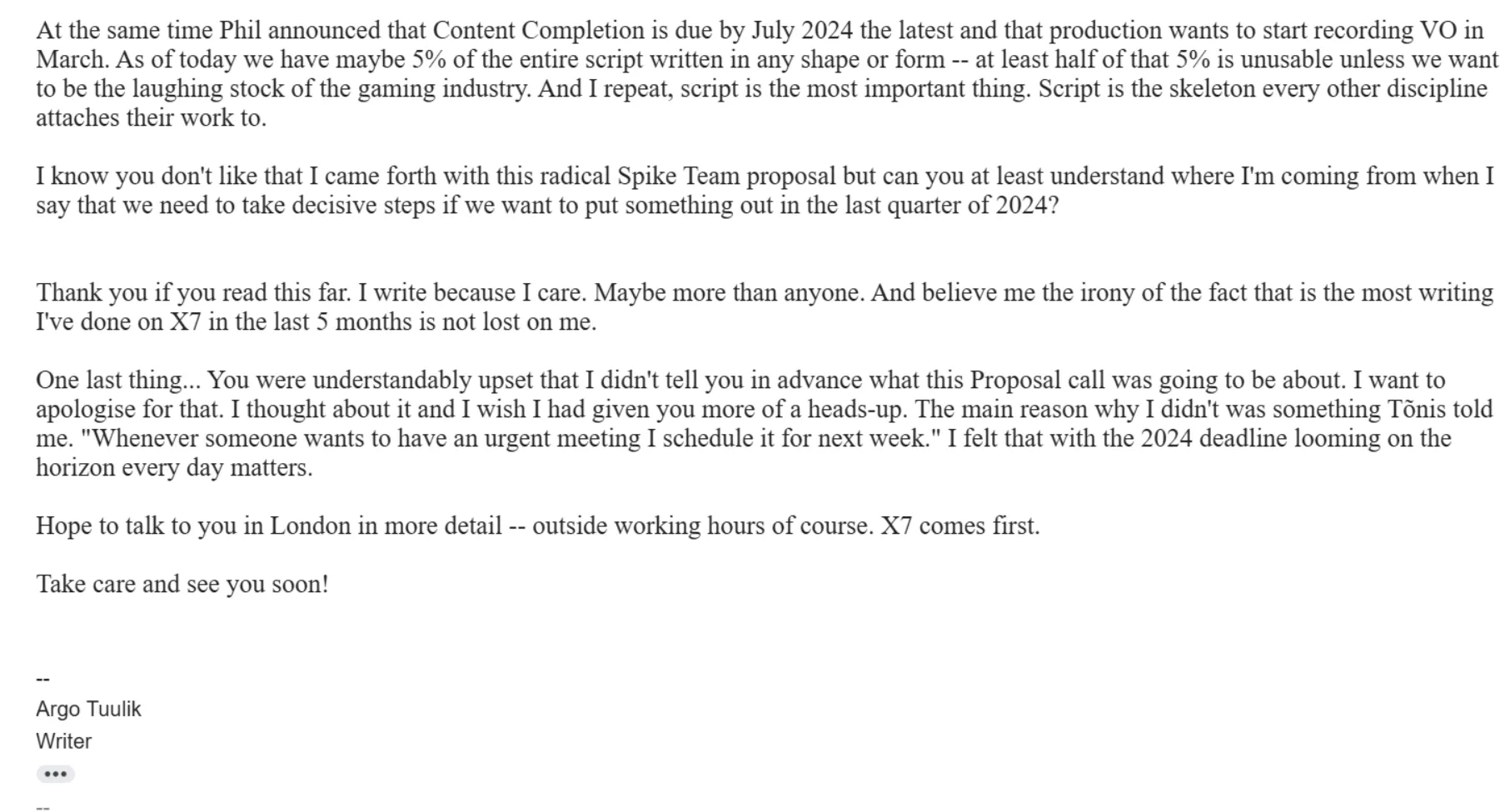 So let’s wrap it. In February 2024 Zaum cancels X7 and announces redundancies in the studio.