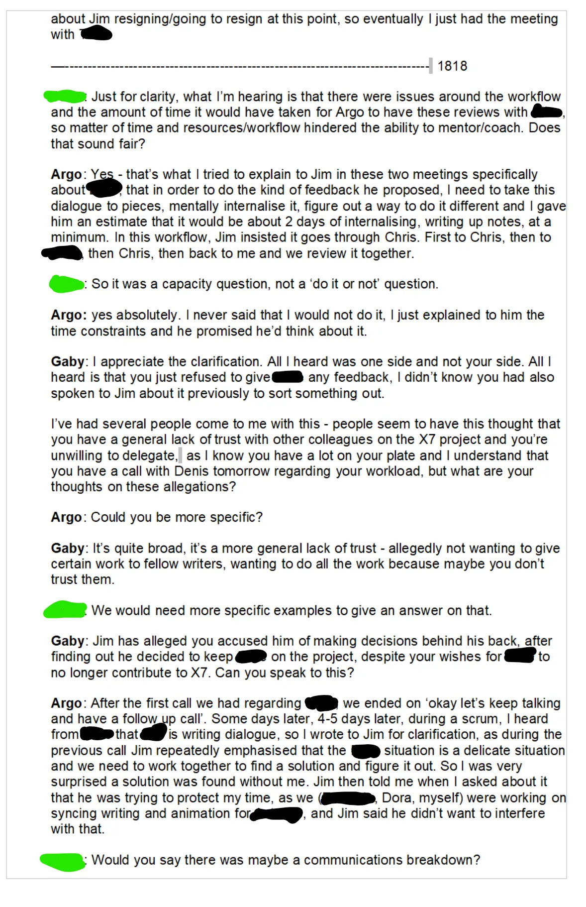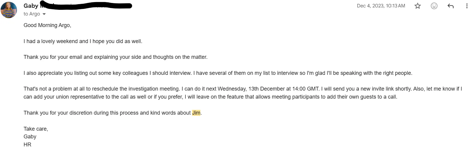 After the meeting I sent HR all my chatlogs with Jim and groupchats with