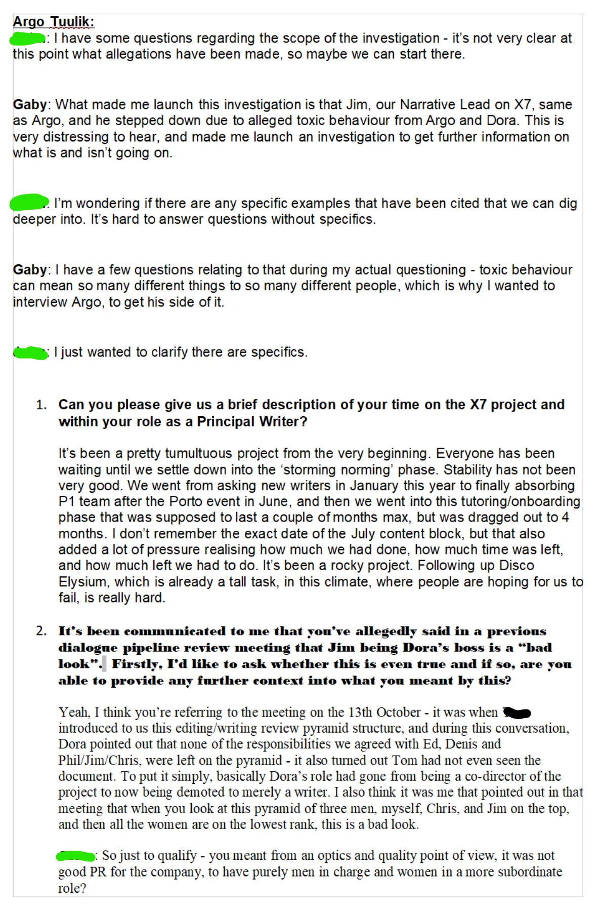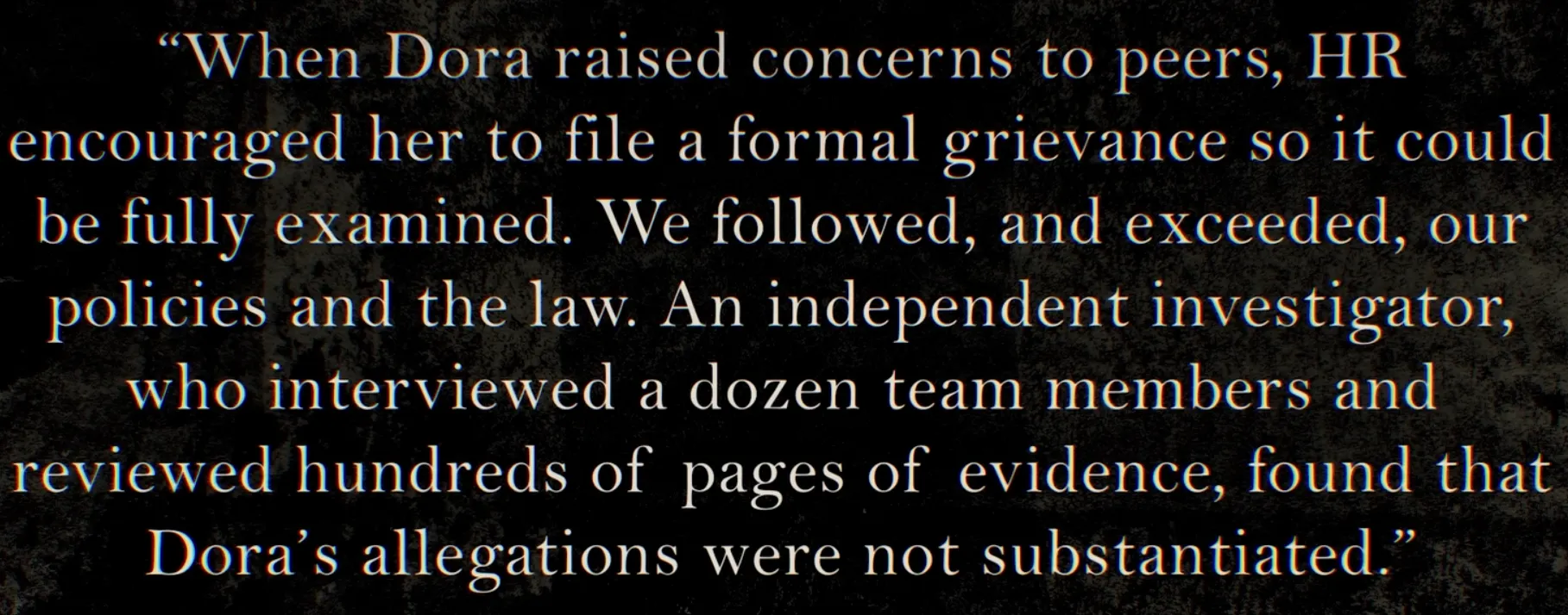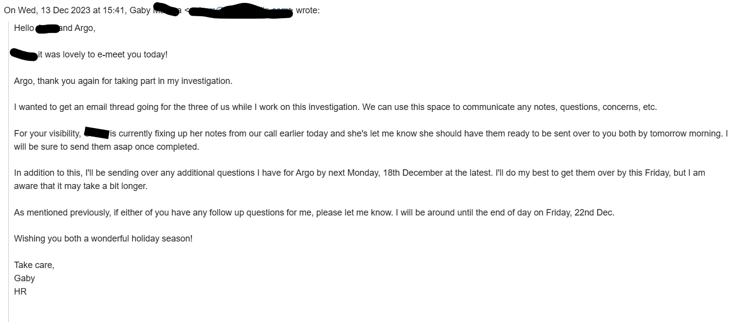 investigated by an “independent” HR company. Independent in a sense that