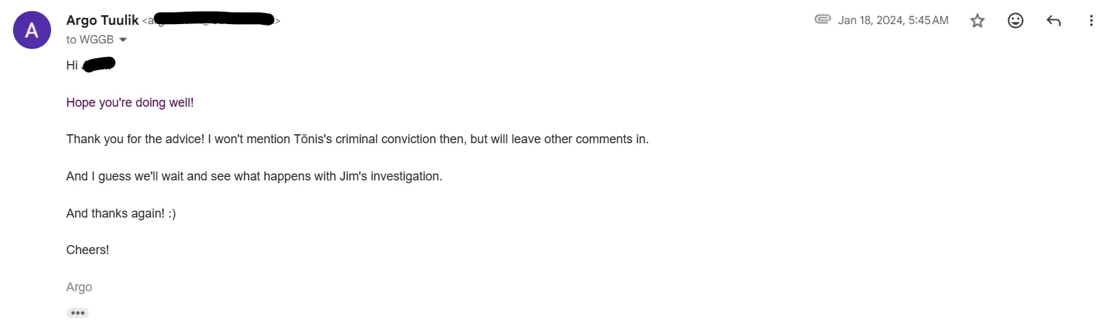 Afterwards Tõnis and I exchange more emails…