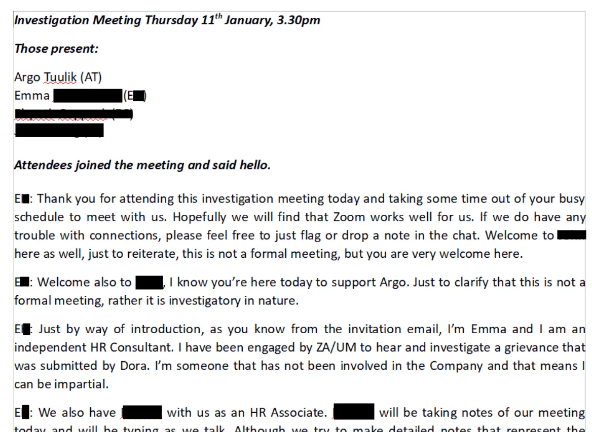 reality it was an internal investigation conducted by Zaum HR
