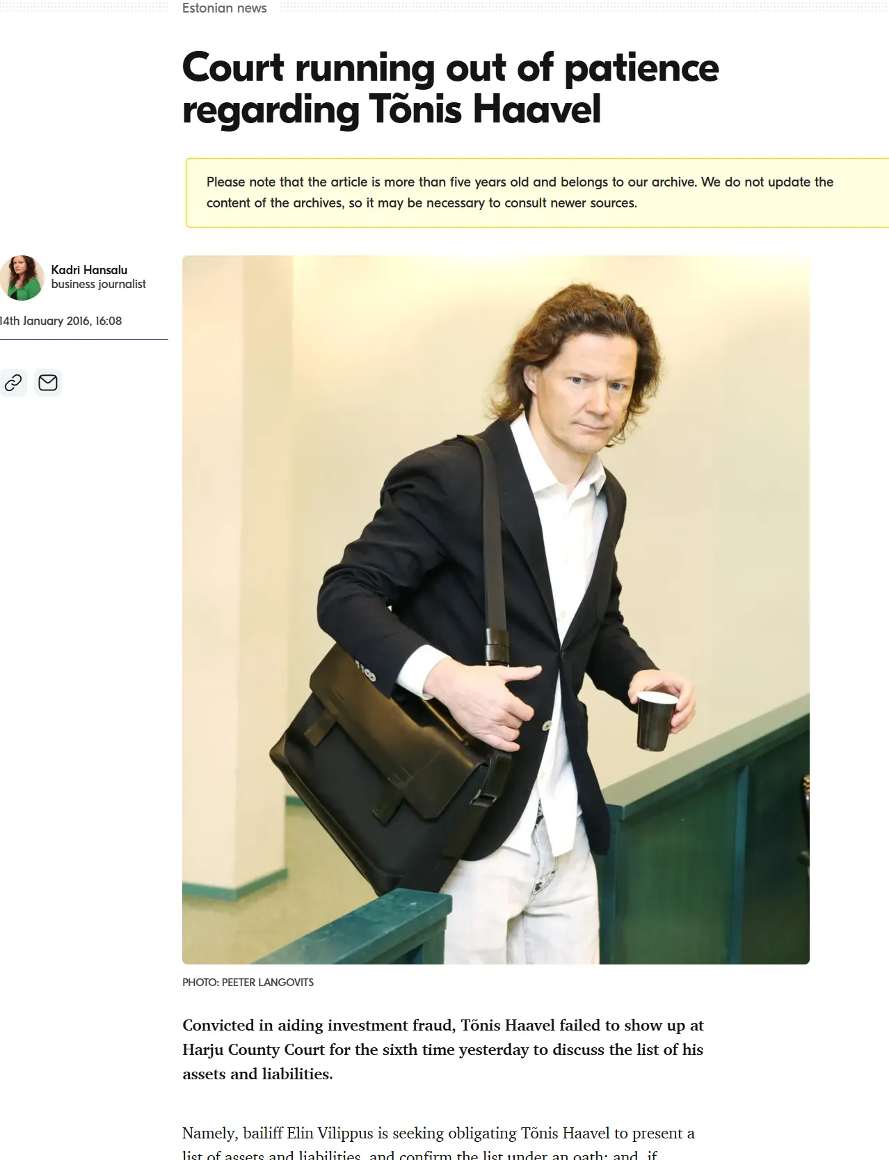 Havel to obscure his past criminal conviction in Estonia) specifically