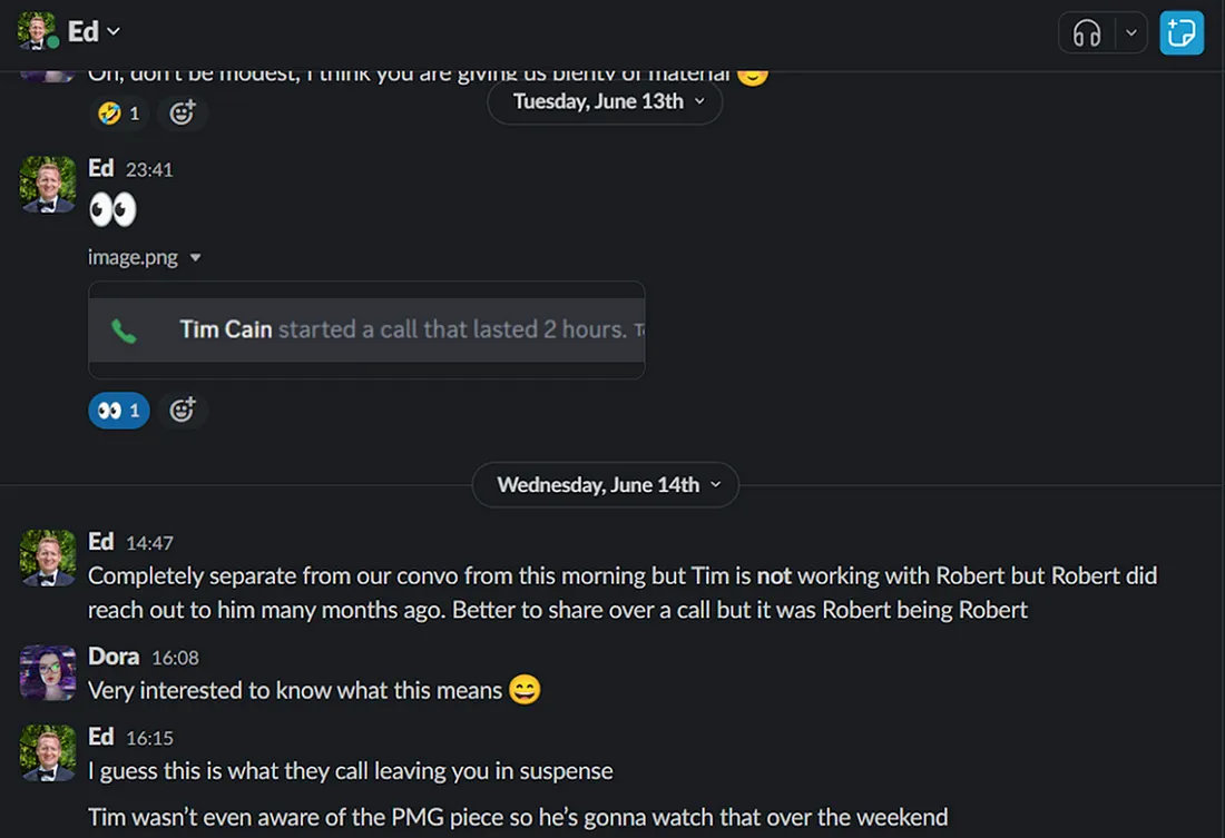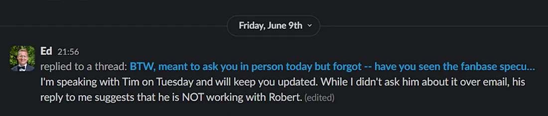 that time, Ed, you personally called Tim Cain to ask him not to work