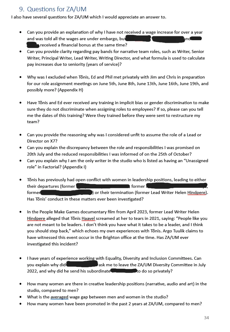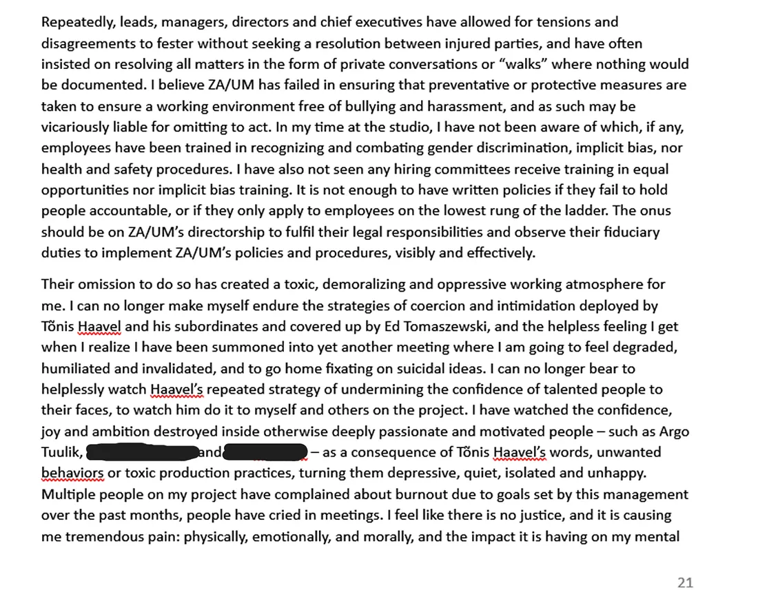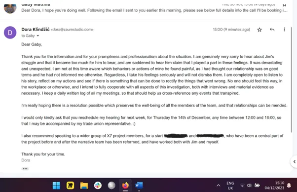formal Grievance complaint I had filed to the studio’s HR, highlighting