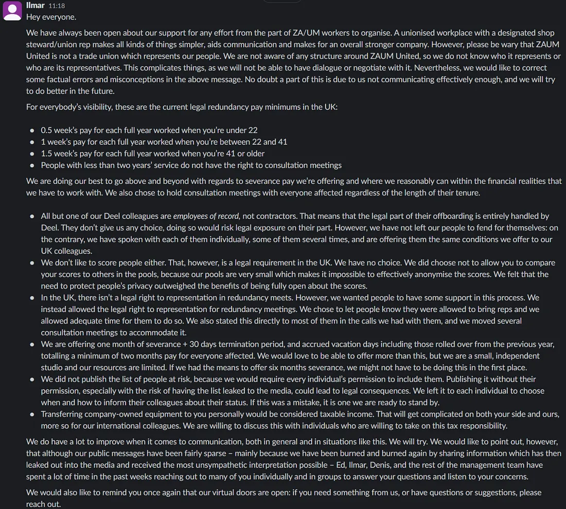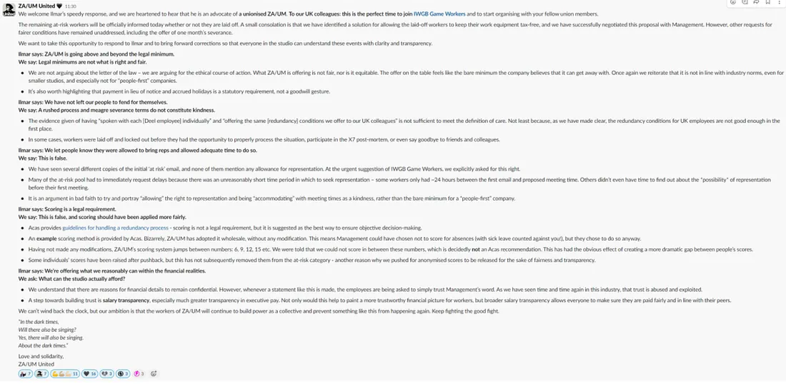 unfortunately ZA/UM’s management have left me no choice but to put an