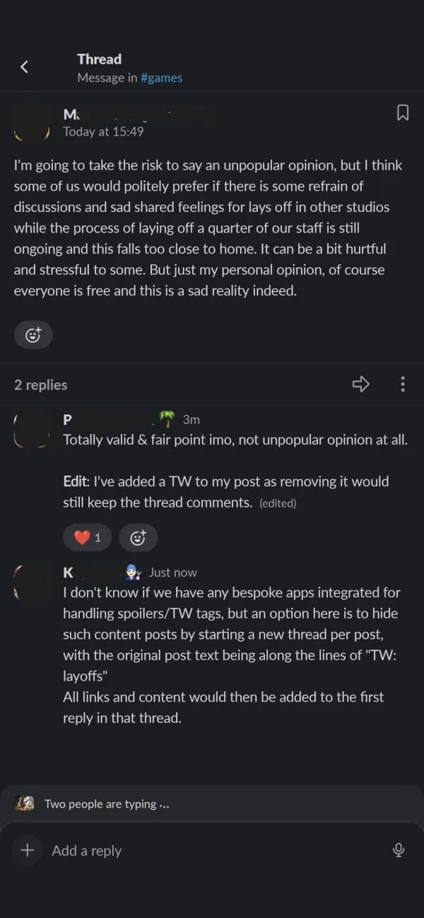 In Spring 2025, Chris Bratt from People Make Games informed me that they