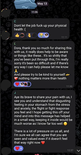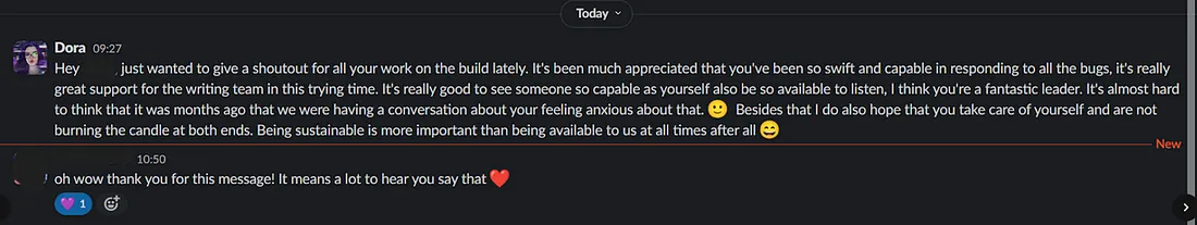 critical, due to not wanting to expose the privacy of co-workers. I will