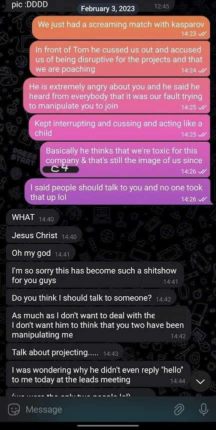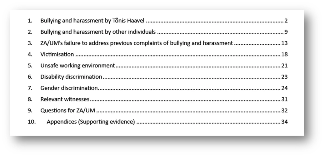 * the numerous HR complaints filed for bullying against Tõnis and a