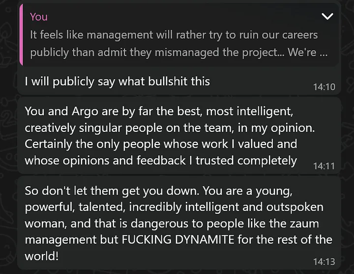* ZA/UM claimed they had found evidence against me in an internal HR